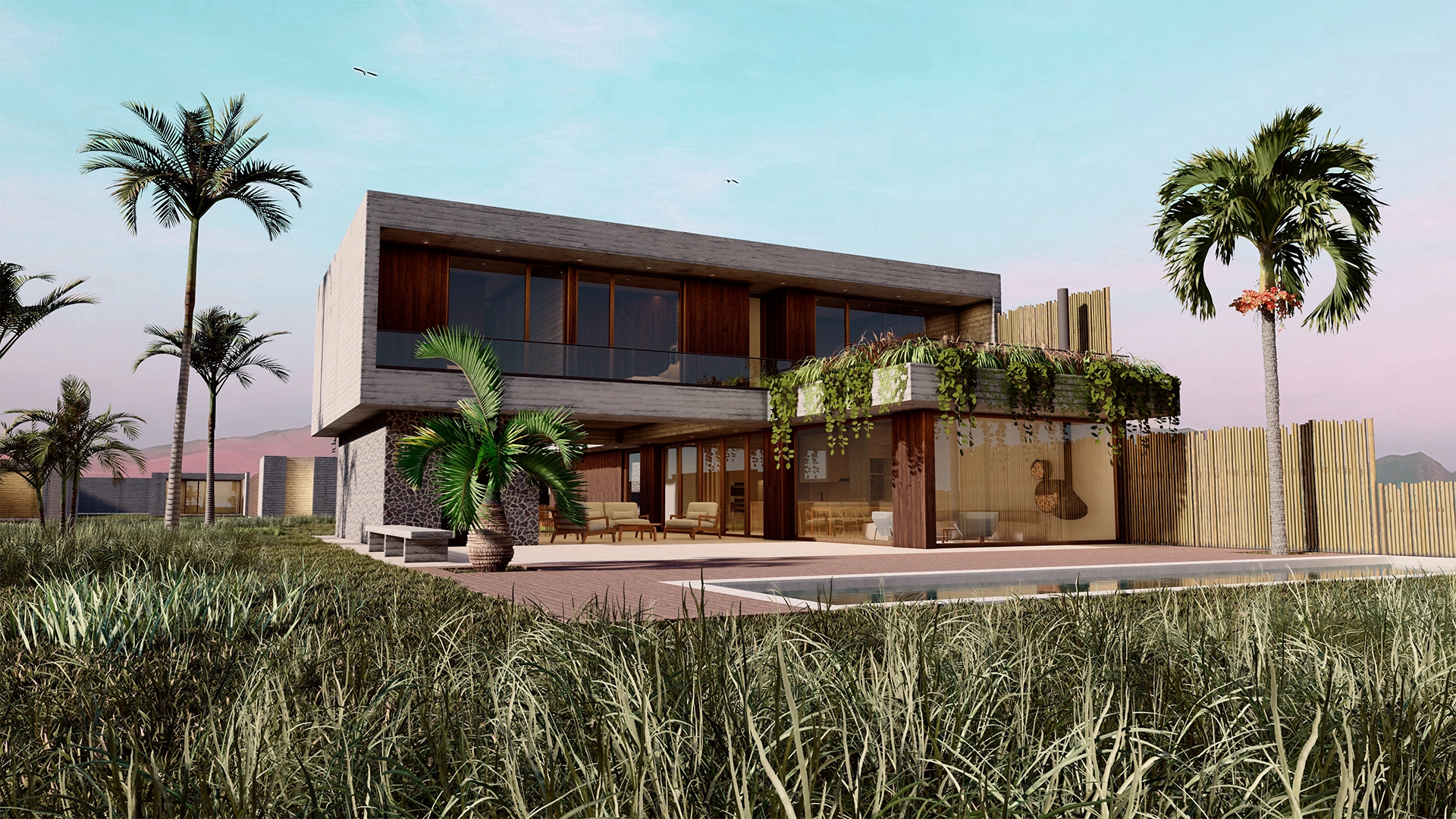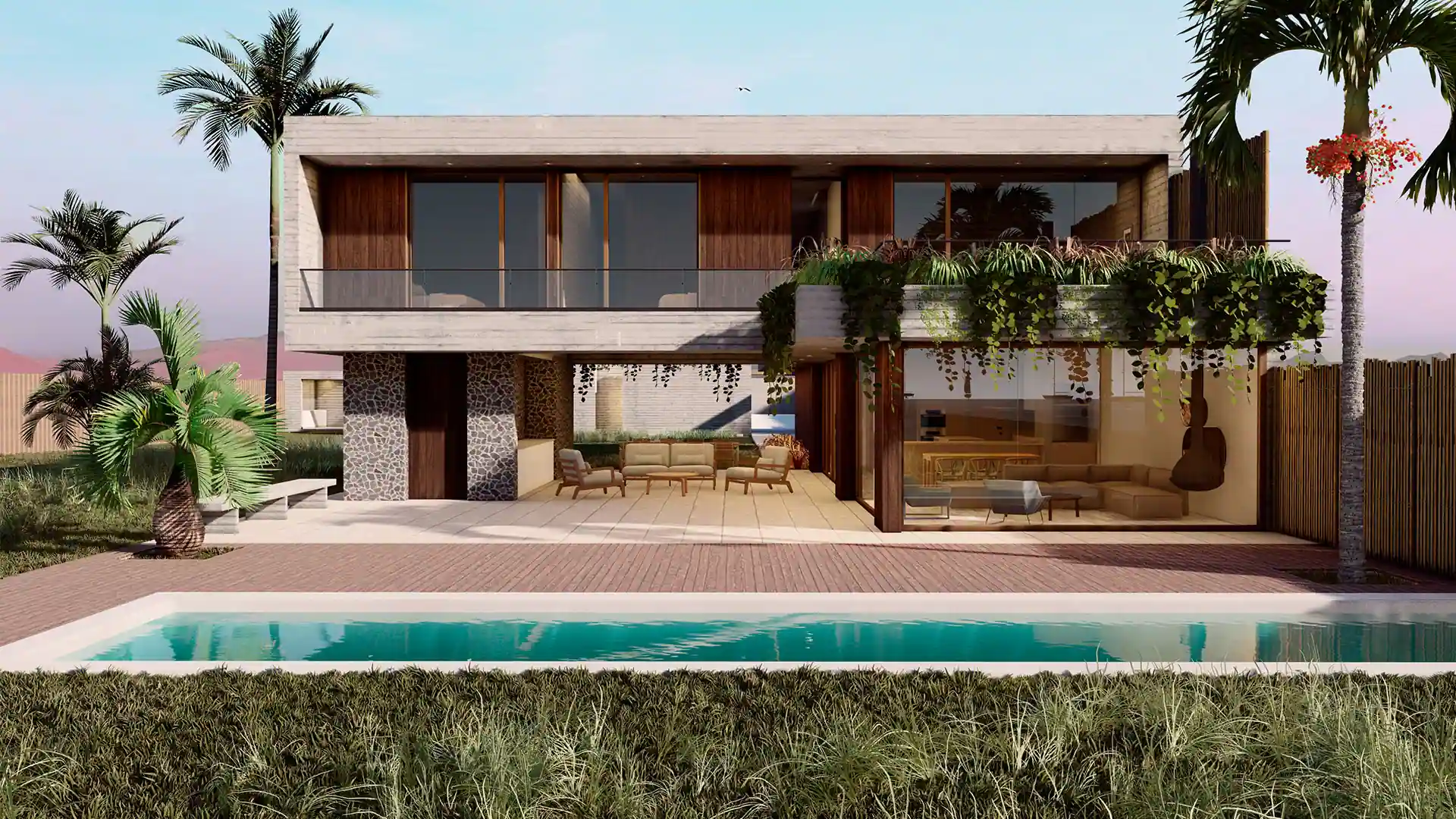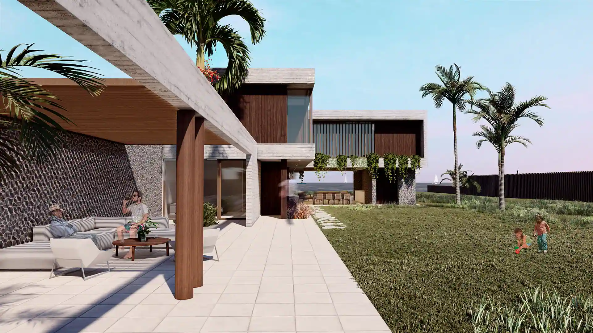 La calidez del desierto, el fuerte viento y la proximidad al mar dictan los parámetros para el diseño de esta casa. Se prioriza el uso de elementos de fácil mantenimiento y adecuada vejez. La geometría del terreno, estrecho y muy largo, propicia un diseño dilatado, alargado, salpicado de puntos de encuentro dentro de un recorrido de casi 90 metros.